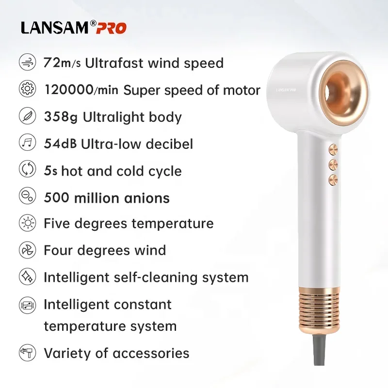 sèche-cheveux professionnel, fer à cheveux de salon, airstyler, sèche-cheveux à une touche, air froid, ions, ensemble de brosses soufflantes. »